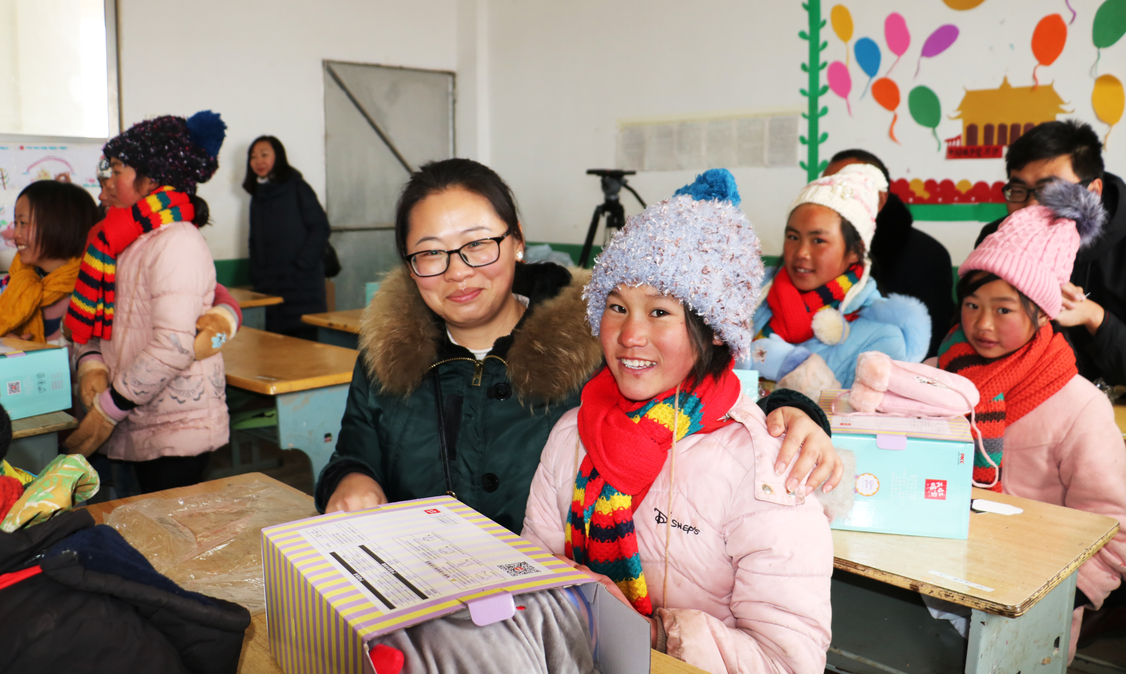 照片在網(wǎng)絡(luò)傳開的當日,獲悉情況的華新昭通公司立即采購4萬余元物資,經(jīng)過一天的準備后,組織28名志愿者在冰雪路上驅(qū)車兩個小時,到達該校。志愿者們捐贈了帽子、圍巾、書包、跳繩等保暖用品和學習用品150份,還為全校六個班級教室捐贈了電用油?。ㄈ∨鳎┝_,為學生的冬日奉上溫暖。志愿者們將帽子、圍巾給孩子們穿戴上,將書包等用品發(fā)放到他們手中,孩子們的臉上都洋溢著開心溫暖的笑容。